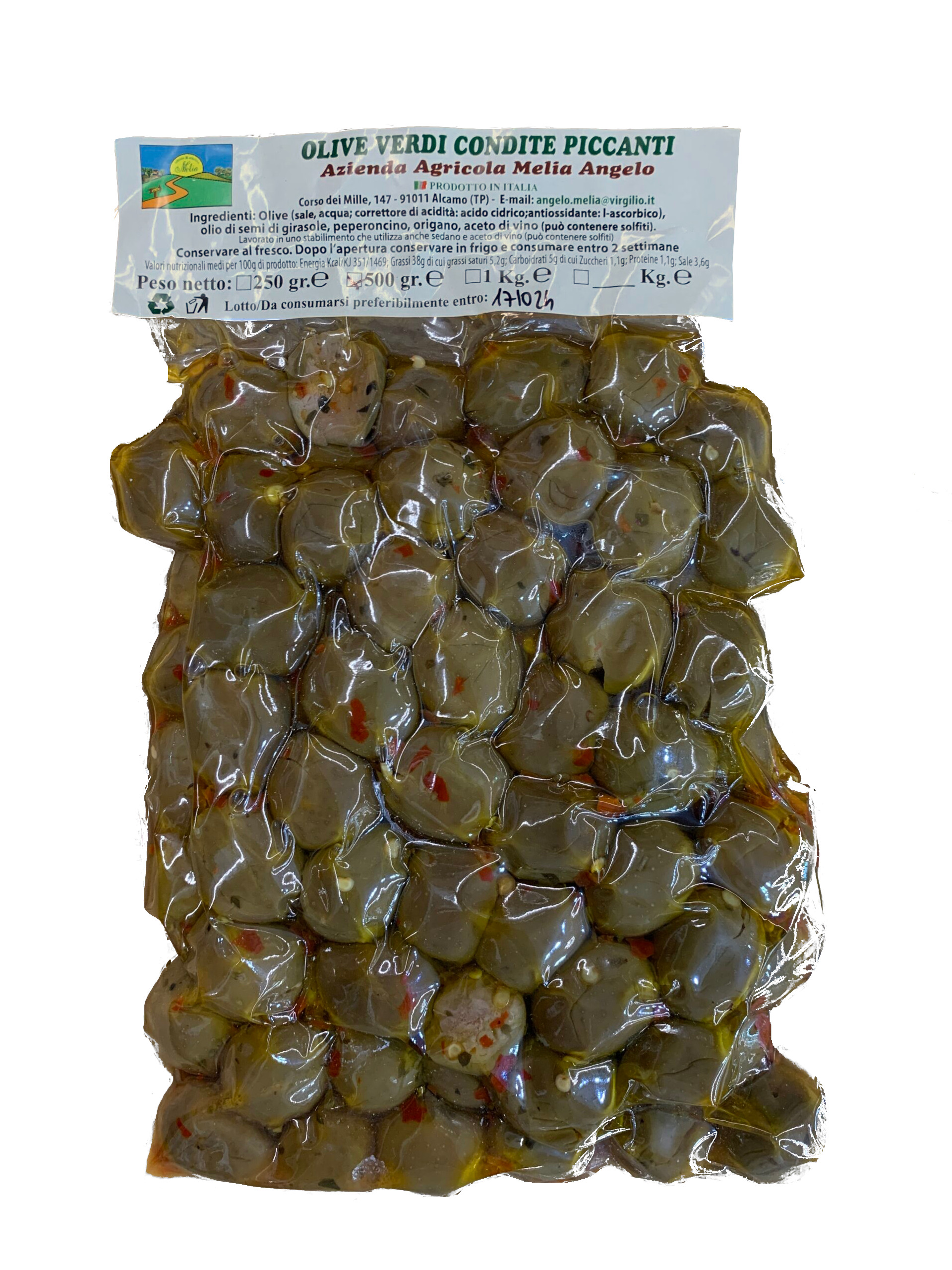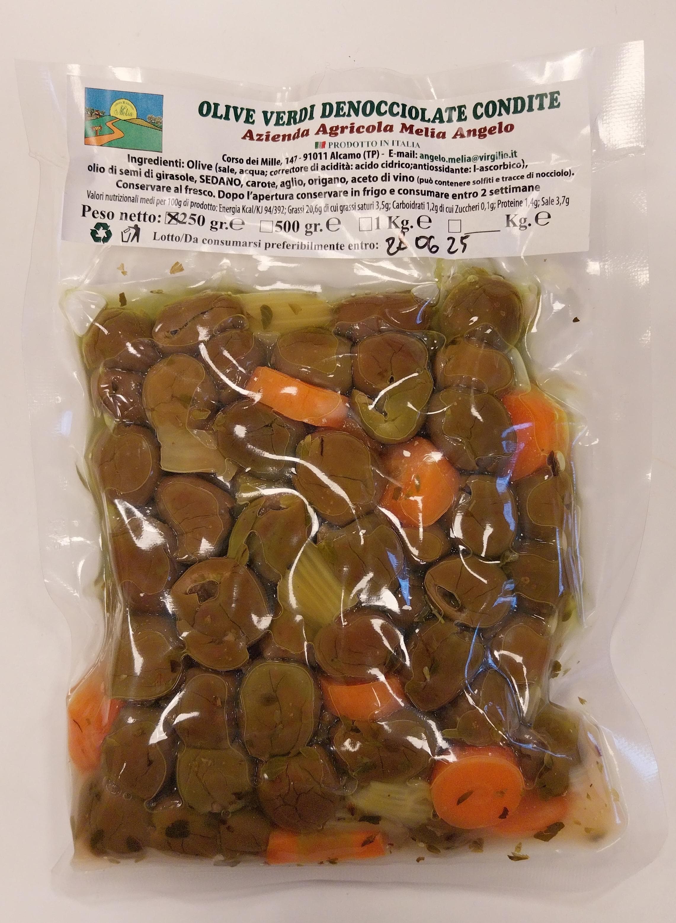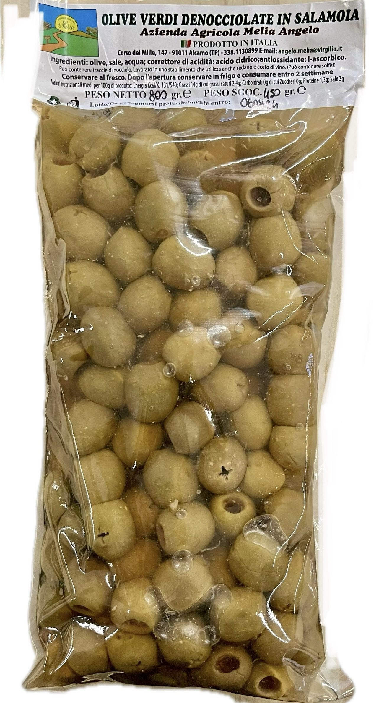 Olive verdi denocciolate in salamoia - Azienda agricola Melia
