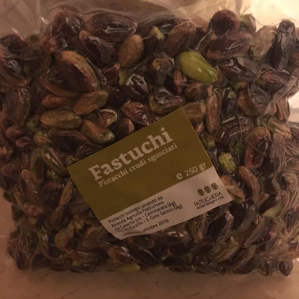 Pistacchi di Sicilia crudi e sgusciati - Azienda Agricola Fastuchera tritati e tostati come guarnizione.