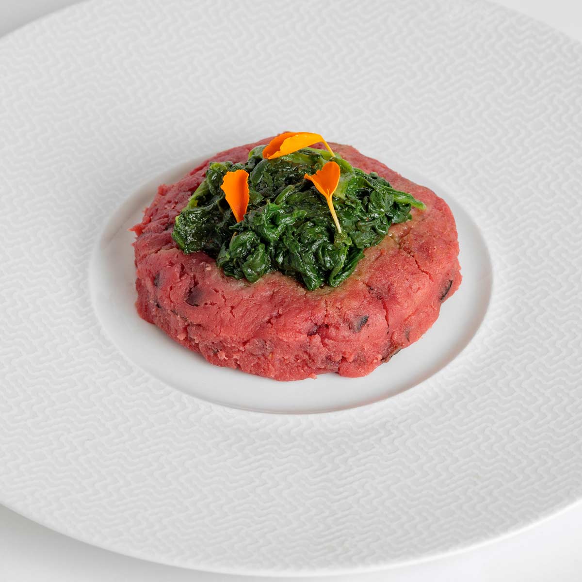 Alcuni potrebbero definirlo un azzardo, dal canto nostro possiamo dirvi che è un piatto concepito seguendo un’equilibrio creato dai contrasti gustativi degli ingredienti: La rana pescatrice all’Amatriciana. Con la giusta materia prima la creatività viene esaltata: pesce fresco di giornata accompagnato dai pluripremiati Pomodori San Marzano Dop - Agrigenus, Guanciale La Cinta di Guido di Cinta Senese del nostro amico e piccolo produttore artigianale La Cinta di Guido, Pecorino romano DOP ed infine una fetta tostata di pane biologico di farro. Il risultato è un'esplosione di sapori, possibile grazie alla reinterpretazione di un classico della cucina tradizionale nostrana ed il corretto uso dei migliori prodotti italiani.