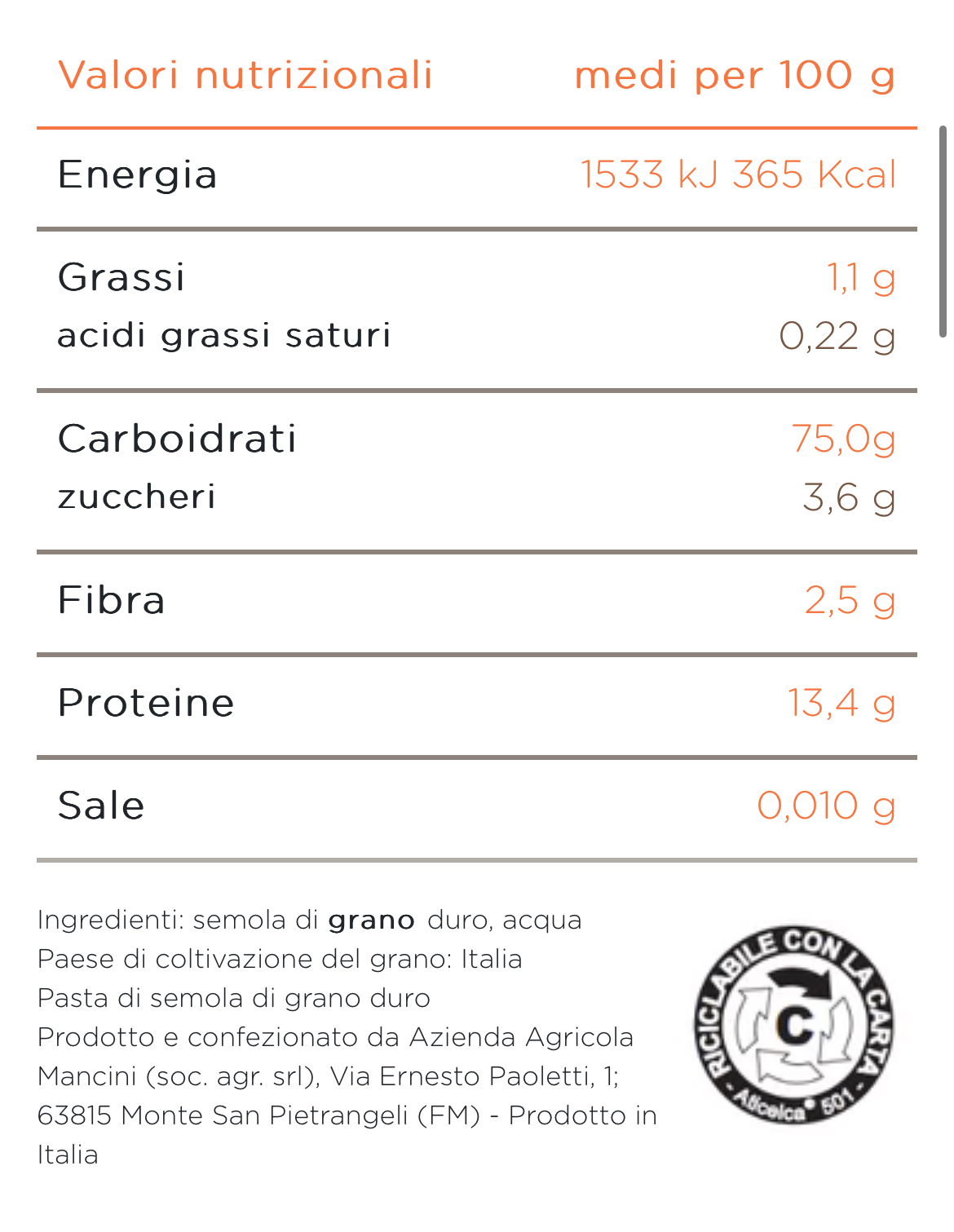 L'Azienda Agricola Mancini produce pasta con il grano duro seminato e raccolto nei propri campi. L'importanza riposta nella materia prima, il rispetto per l'ambiente, la combinazione di innovazione e tradizione, rendono la Pasta Mancini un prodotto speciale.