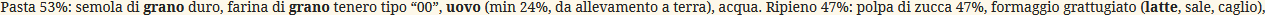 Prodotto con zucche del tipo violina con filiera completa dal coltivatore alla produzione del tortello. ripieno con aggiunta di amamaretti,come da tradizione locale.