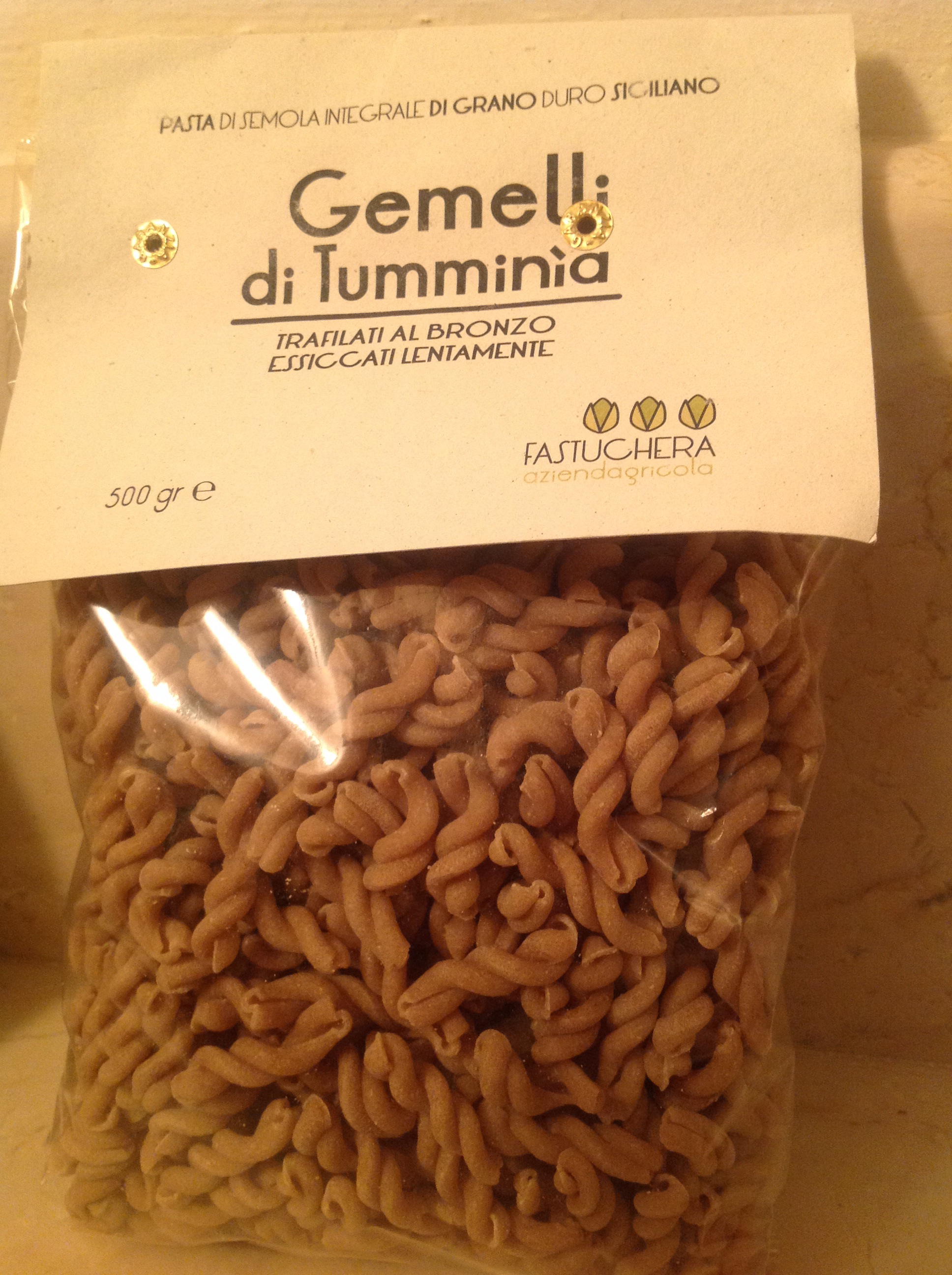 Mettete in una pentola abbondante acqua salata appena bolle calate i Gemelli di Tumminìa Fastuchera e cuocete per 8 minuti, scolate e saltate in padella con il sugo pronto.