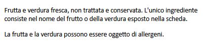 L'elenco degli ingredienti visibile nell'etichetta / fotografia del prodotto sopra riportata o nella scheda testuale. Utile in particolare con riferimento alla consultazione dell' Elenco Allergeni come da Regolamento (UE) n.1169/2011